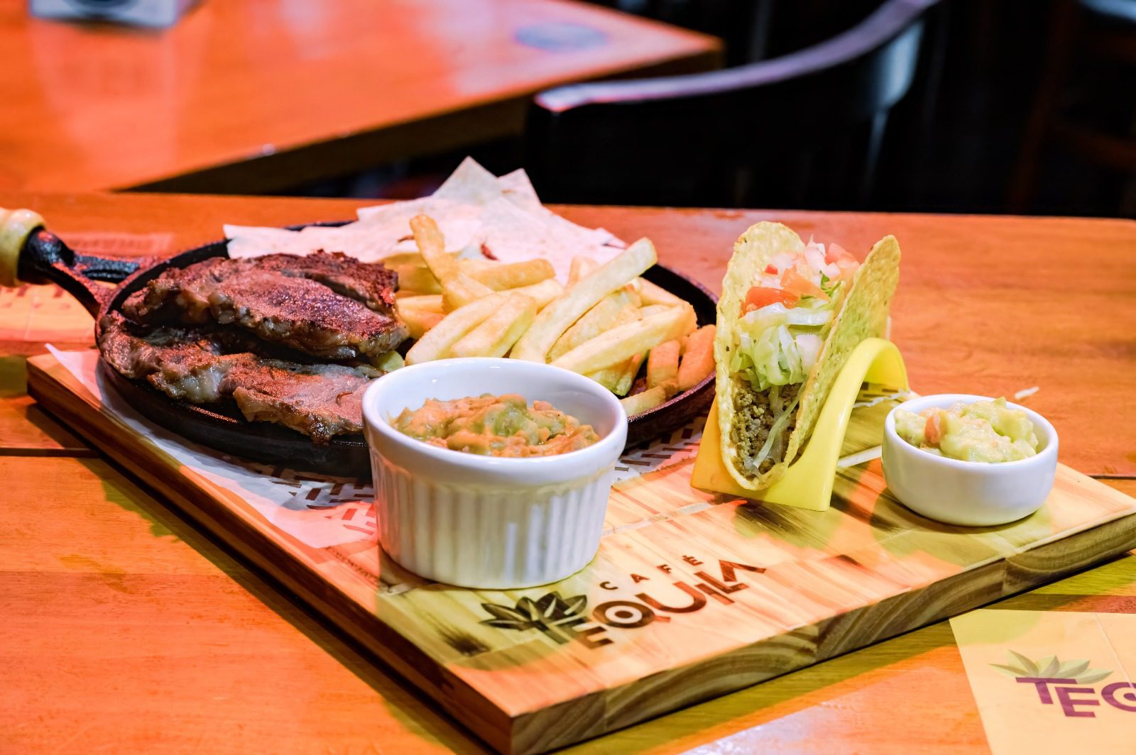 Nosso Restaurante oferece uma variedade de pratos da culinária mexicana, porções e burgers, além de opções de sobremesas.